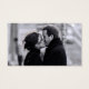 Ein hübscher und verzierter Scrollmusterrahmen in Aqua, Gold und Creme schafft ein Vintag aussehendes Stag & Doe Ticket. Passen Sie sich mit dem Foto des Paares auf der Rückseite an.