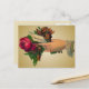 Ein Vintages Muttertagsbild mit einer weiblichen Hand mit einem kleinen Strauß roter Blume mit einer Karte, die Devotion sagt.