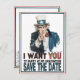Onkel Sam bedeutet Geschäft und er zeigt auf Sie, um für eine Hochzeit, Jahrestag, Abschluss, Geburtstag, Ruhestand-Party, Werbeaktion oder 4. Juli Veranstaltung . Großes Thema für militärische Funktionen und patriotische Ereignisse. Kopie des originalen Vintagen ich Woll You Uncle Sam United Staaten Kriegsposter.