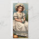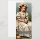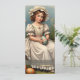 Ein junges Mädchen in einem eleganten Vintagen Kleid sitzt auf einem Holzlog und hält ein schön dekoriertes Osterei. Umgeben von blühenden Blume und einem neugierigen Kaninchen strahlt die Szene Wärme, Nostalgie und den Geist der Osterzeit aus.