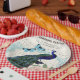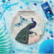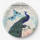 Vintager Pfau auf der französischen Ephemerakolage Pappteller