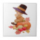 Vintager Pilgrim Boy betet auf Pumpkin Fliese