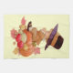 Vintager Pilgrim Boy betet auf Pumpkin Geschirrtuch
