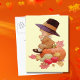 Vintager Pilgrim Boy betet auf Pumpkin Postkarte