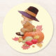 Vintager Pilgrim Boy betet auf Pumpkin Runder Pappuntersetzer