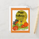 Auf dieser Postkarte ist ein niedliches, Vintages Bild eines Kürbispflasters mit "Happy Halloween"-Wünschen zu sehen. Eine gute Art Halloween Grüße an Familie oder Freunde zu schicken!
