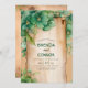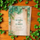 Diese Hochzeitseinladung zum St. Patrick's Day bietet einen Vintagen Rahmen mit Grünpflanzen und einen QR-Code für Online-UAWG. Der Holzrahmen ist mit üppiger Vegetation geschmückt, die an drei Ecken angeordnet ist, um eine Touch Raffinesse zu schaffen. Diese Einladung unterscheidet sich von dem üblichen Kleeblattmotiv durch eine besondere Mischung aus Grün und keltischem Schriftart, was zu einem exquisiten und raffinierten Aussehen für eine St. Patrick's Day Hochzeit führt. Die Aufnahme eines QR-Codes auf der Rückseite ermöglicht es den Gästen, bequem online zu UAWG und damit ein zeitgemäßes Element in das Gesamtdesign zu integrieren.