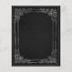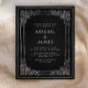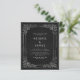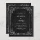 Diese elegante Hochzeitseinladung besticht durch einen verzierten Vintagen silbernen Rahmen auf einem bedrückten schwarzen Hintergrund in Imitation eines antiken Buchdecks. Passen Sie den silbergrauen Text mit Ihren Namen und Hochzeitsdetails an. Das Rahmendesign wird auf der Rückseite der Karte wiederholt.