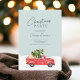 Vintage Truck Eis blauer Schnee Weihnachtszeit Party Einladung mit Aquarell roter LKW, Weihnachtsbaum, Weißschnee auf einem essbaren eisblauen Hintergrund und Schneeflocken Muster hinten.