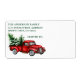 Watercolor Classic Vintag Red Truck und Weihnachtsbaum Weihnachtsschiffsschilder. Grüner Text.