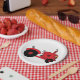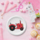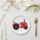 Ein Vintager roter Traktor aus einem Bauernhof. Dieses Design sieht wirklich effektiv aus bei diesen Paper-Tellern