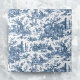 Dieses liebevoll restaurierte, Vintage französische Jouy-Muster aus den 80er Jahren besticht durch fröhliche Szenen rustikalen Bauernlebens mit Tieren, alten Ruinen, Hütten und Bauern, die in Arbeit verlobt sind und auf weißem Hintergrund blau spielen.
