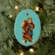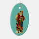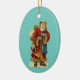 Auf diesem ovalen Keramik-Ornament ist ein Vintages Bild des Weihnachtsmannes mit Zuckerrohr, Sack und Spielzeug zu sehen. Auf der Rückseite des Ornaments steht: "Wünschen Sie sich ein altmodisches frohe Weihnachten". Schöne Ornamente, um an Ihrem Baum zu hängen oder als Geschenk zu geben!