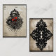 Geschäftskartenentwurf, die Vintagen Blumenelemente kennzeichnend gemischt mit zwei Schädelillustrationen und -ROTEN ROSEN.