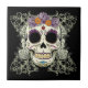 Vintager Schädel und Blumen-Fliese Fliese