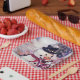 Vintager Schneemann im Schnee Zeichnend Pappteller