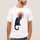 Unser T-Shirt für Katzenliebhaber, Katzeninhaber und Fans der Kunst Nouveau kennzeichnet vielleicht eine der berühmtesten Malereien der schwarzen Katze in der Kunstwelt. Geschaffen durch Schweizer-geborenen französischen Kunst Nouveau Maler Theophile-Alexandre Steinlen im Jahre 1896 für seines Freund Rudolphe Saliss Kabarett-Nachtklubort Le Chat Noir in Paris, starrt die schwarze Katze vom Plakat heraus entlang Sie mit seinen hellen gelben Augen und sträubenden Bärten an. Wir haben einen gestreiften Halo der Farbe um den Kopf der Katze - glühend rot hinzugefügt, orange und grün, damit sein Gesicht und Augen fast aus beleuchtet schauen.