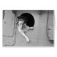 Ein Vintages Foto eines Hundes auf einem Schiff.