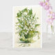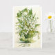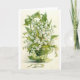 Eine Vintage Abbildung eines grünen Korbs voller weißer Lilie aus den Tal-Blume, der mit einem grünen Bogen überzogen wurde. Diese Karte ist leer für Ihre eigene Nachricht.