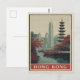 Jeder würde Liebe haben, diese Vintage Reise-Postkarte mit einer Retro-Abbildung der Skyline der Stadt Hongkong, einschließlich eines buddhistischen Tempels, zu erhalten!