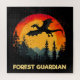 Ein majestätischer Drache stürzt durch einen bezaubernden Wald unter einem pulsierenden Sonnenuntergang. Die reichen Farben und Details bringen ein Gefühl von magischem Abenteuer und zeitloser Schönheit.