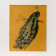 Schöne Pfauenillustrierung auf Senfgelb Puzzle für Vintage Liebhaber.