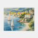 Französische und europäische Reisewerbung - Strand, Dorf, Menschen, Bäume, blaues Meer und Himmelsbild