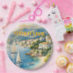 Französische und europäische Reisewerbung - Strand, Dorf, Menschen, Bäume, blaues Meer und Himmelsbild