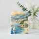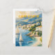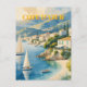 Französische und europäische Reisewerbung - Strand, Dorf, Menschen, Bäume, blaues Meer und Himmelsbild