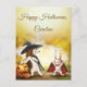 Anpassbare Halloween Postkarte mit niedlichen Tieren im Vintagen Stil. Du kannst deinen Namen setzen.