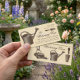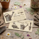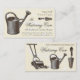 Antiker Wassertopf und Pik in Sepia. Elegante Vintage Visitenkarten für Blumenladen, Gärtner, Landschaftsdesigner. Aus einer antiken Gravur.