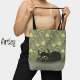 So eine hübsche Tasche für den Katzenliebhaber in deinem Leben! In den Pastellfarben Blau, Grün und Creme befindet sich im Hintergrund ein Jugendstil-Blumenmuster, im Vordergrund steht eine süße schwarze Katze. Der untere Teil des Designs ist pastellblau mit einem Leinen-Overlay. Das Muster wird auf der Rückseite umgekehrt, sodass die Kätzin auf der anderen Seite steht und das Muster an den Seitennaht genau übereinstimmt.