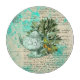 Hübsche Vintage Collage mit einer extravaganten minztönigen Teekontrolle mit Blattwerk und grünem Schmetterling auf pastellgelbem Aqua Not leidender ephemera Hintergrund