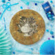 Vintager Teekessel und goldenes Ephemee Pappteller