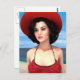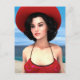 3D-Darstellung einer Vintagen jungen Frau mit einem roten Sommerkleid und einem Hut auf blauem Himmel und Meereshintergrund