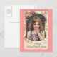 Schöne Vintage Postkarte mit süßem Mädchen und Rose, die "Viele glückliche Tage bei Ihnen" wünschen!