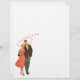 Vintage Illustration Liebe und Romantik Valentinstag-Bild mit einem jungen glücklichen, frisch verheirateten Paar, das mit den Armen um sich herum und mit den Herzen herumschwebt.