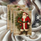 Cottage-Kern ästhetische Weihnachtsdecoupage mit dem Weihnachtsmann, St. Nikolaus, Weihnachtsmann in seinem roten Samtmantel und Stiefel mit einem riesigen eleganten Kranz mit Weihnachtsballen Ornamenten in Gold und Rot. Vintages Not leidendes Bild mit Crackle-Oberfläche und Schrift-Handschrift ephemera überlagert den Hintergrund sanft. Dieses Design wurde von Audrey Jeanne Roberts, einer international anerkannten Künstlerin und Designerin, grafisch entworfen und urheberrechtlich geschützt.