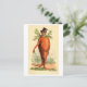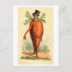 Diese Postkarte ist eine Reproduktion einer Vintagen Viktorianischen Handelskarte, die einem Mann mit einem Oberhut und Monokel zeigt, aber mit dem Körper einer Karotte.