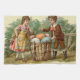 Vintages Viktorianisches Osterküchentuch mit einem Jungen, der einen Korb voller Ostereier anbietet!