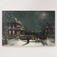 Dies ist ein digital erweiterter Ausdruck eines antiken Gemäldes aus dem Jahr 1880 aus der Viktorianischen Zeit mit dem Titel Heiligabend von J. Hoover und zeigt eine schöne schneebedeckte Winterlandschaft mit Pferden und Buggy, Viktorianischen Zuhause, Menschen und Vollmond.