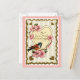 Ein farbenfroher, kleiner Vogel mit hübschen rosa Blume und goldenen Herzen. Text: St. Valentins Grüße in einem cremefarbenen Herz. Bild einer Vintagen Valentine Grußkarte auf einem benutzerdefinierten rosa Hintergrund.
