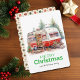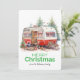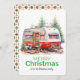Diese skurrile Weihnachtskarte mit Aquarellfarben besticht durch einen charmanten Vintagen Camper, der mit festlichen Details geschmückt ist. Der weiße Camper mit roten Akzenten liegt in einem schneebedeckten Wald, umgeben von hohen, schneebedeckten Kiefern. Ein Weihnachtskranz schmückt die Tür, während ein gemütlicher Tisch mit kariertem Tuch und verstreuten Geschenken die festliche Szene abrunden. Die Nachricht "MERRY CHRISTMAS" in grünem Text fügt eine fröhliche Touch, personalisiert mit Ihrem Familiennamen unten. Dieses Design zeichnet sich durch nostalgische Wärme und Charme aus.
