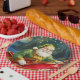Vintager Weihnachtsmann im Sleigh, Goldener Mond, Pappteller