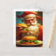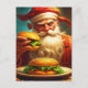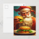 Werbung im Vintagen Stil mit dem Weihnachtsmann, der einen Hamburger oder zwei Weihnachtskarten isst.
