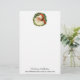 Stationery mit einem Retro-Bild mit einem lächelnden glücklichen Weihnachtsmann umgeben von einem Kiefernkranz mit einem Hauch von Heiligen in seiner Kappe.