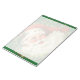 Ein Notizblock mit einem Retro-Bild mit einem lächelnden glücklichen Weihnachtsmann umgeben von einem Kiefernkranz mit einem Hauch von Heiligen in seiner Kappe.