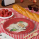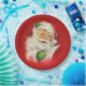 Original niedlicher Vintager Urlaub Santa Claus viktorianische Illustration auf dunkelrot Hintergrund.