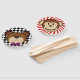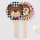 Diese niedlichen Fans haben einen Vintagen Zirkus mit inspiriert Hintergründen mit einem Bären auf der Vorderseite und einem Affen auf der Rückseite.