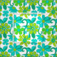 Erleben Sie den Retro-60er und den 70er mit diesem phantastischen Hippie-Muster in leuchtend kalk-grün und aqua-blauen Blumen und Wirbel